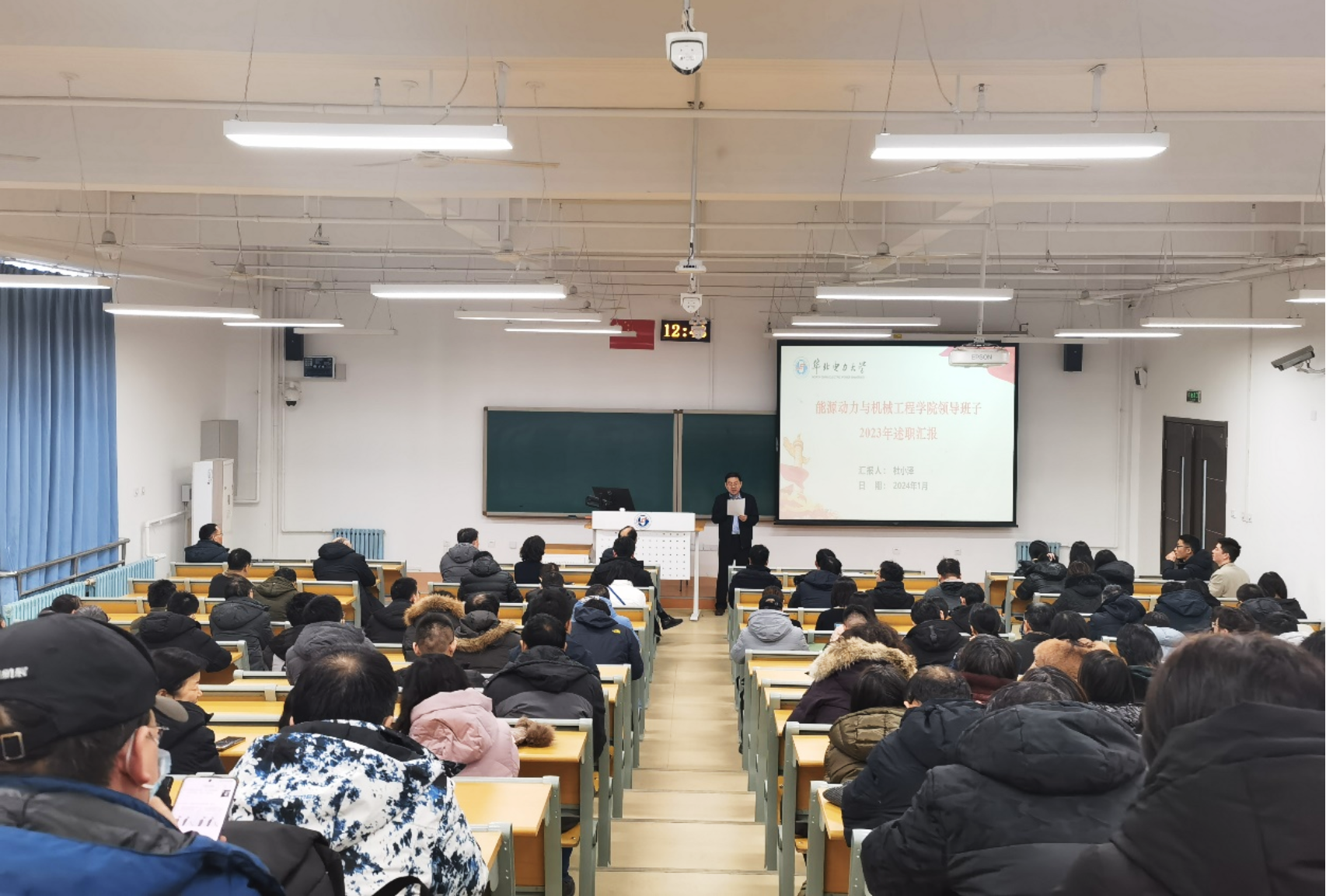 学院院长杜小泽代表学院领导班子作了2023年考核述职汇报,他全面总结了2023年工作,并提出存在的问题,并就2024年重点任务进行了汇报。他指出,2023年,学院始终围绕学校建设高水平研究型大学目标,充分发挥党建引领作用,提升服务双碳战略和能源低碳转型的能力,人才工作取得重大突破,师资队伍实力显著提升,储能、氢能新专业建设稳步推进,有组织的科研初见成效,平台建设取得重要突破,学工群团工作再创佳绩,圆满完成了各项工作任务。未来,学院将全力抓好党建思政,优化学科和专业布局,广开渠道、引育人才,提升人才培养质量,加强科研平台建设,促进学风和就业、深造率工作稳定向好,推动学院各项工作迈上新台阶。